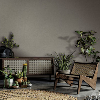 Vliesová tapeta s vinylovým povrchem, vodorovně proužková textura, odstíny hnědé, šedé akcenty.