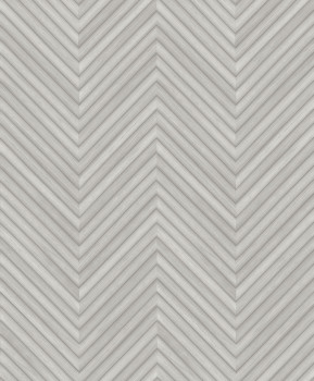 Vliesová tapeta s vinylovým povrchem, vzhled dřevěného cik cak obložení, odstíny šedé.
