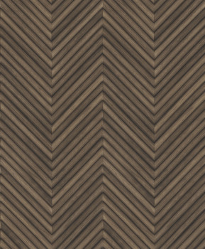 Vliesová tapeta s vinylovým povrchem, vzhled dřevěného cik cak obložení, odstíny hnědé.
