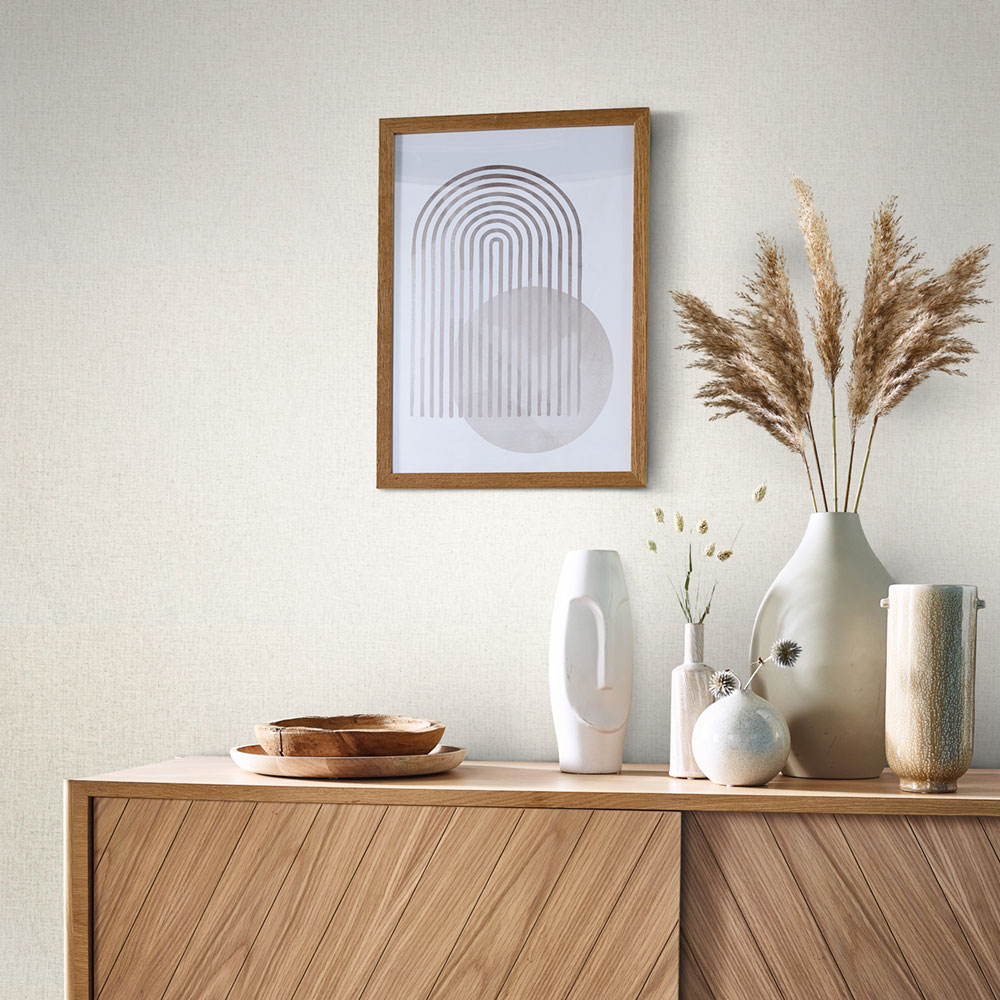 Vliesová tapeta s vinylovým povrchem, vzhled textilie, odstíny krémové, jemná textura.