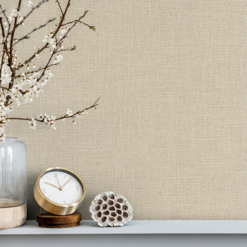 Vliesová tapeta s vinylovým povrchem, vzhled béžové textilie, jemná textura.