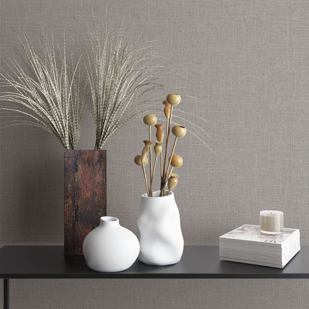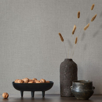 Vliesová tapeta s vinylovým povrchem, vzhled šedé textilie, jemná textura.
