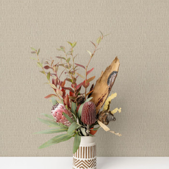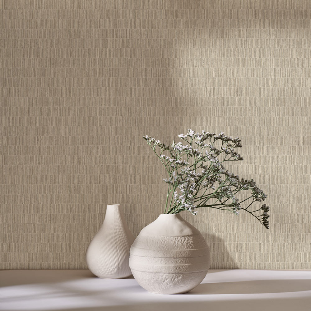Vliesová tapeta s vinylovým povrchem, vodorovný proužkový vzor ze svislých textur v odstínech béžové.
