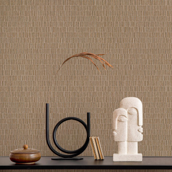 Vliesová tapeta s vinylovým povrchem, vodorovný proužkový vzor ze svislých textur v odstínech hnědé.