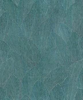 Vliesová tapeta s vinylovým povrchem, proužková textura s obrysy listů, odstíny tyrkysové.