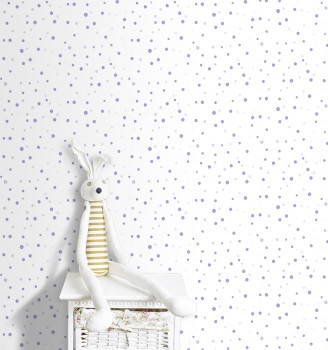 Změňte strohé stěny v útulný pokojíček, kde se vaše děti budou cítit dobře. Puntíky v odstínech fialkové na bílém podkladu. Snadno kombinujte se souvisejícími tapetami.