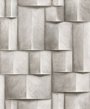 Vliesová tapeta s vinylovým povrchem, jemná textura, grafický vzor, stínování vytváří 3D efekt, odstíny šedé.