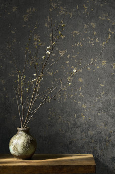 Vliesová tapeta s vinylovým povrchem, dekor černé štukové omítky se zlatými prolisy.