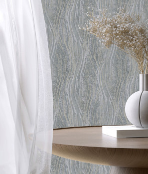 Vliesová tapeta s vinylovým povrchem, plastická textura tvoří vlny, odstíny šedé a béžové.