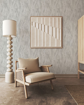 Vliesová tapeta s vinylovým povrchem, plastická textura tvoří vlny, odstíny šedo-béžové.