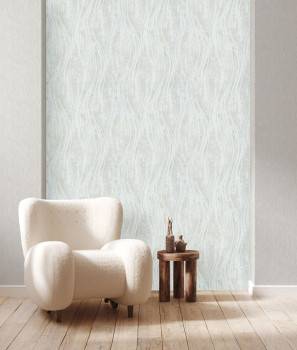 Vliesová tapeta s vinylovým povrchem, plastická textura tvoří vlny, odstíny bílé, krémové a šedé.