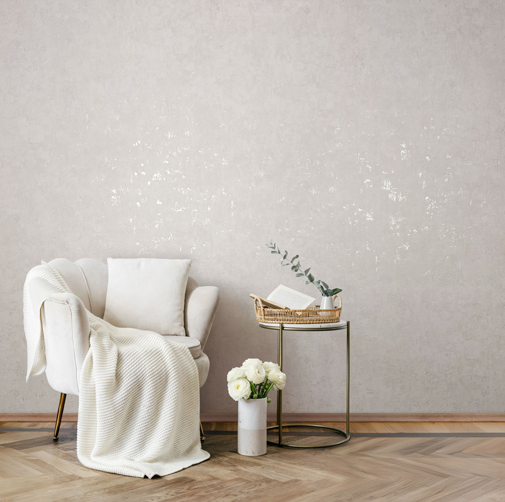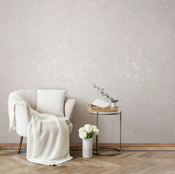 Vliesová tapeta s vinylovým povrchem, dekor štukové omítky s lesklými prolisy, odstíny bílé, krémové / slonová kost.