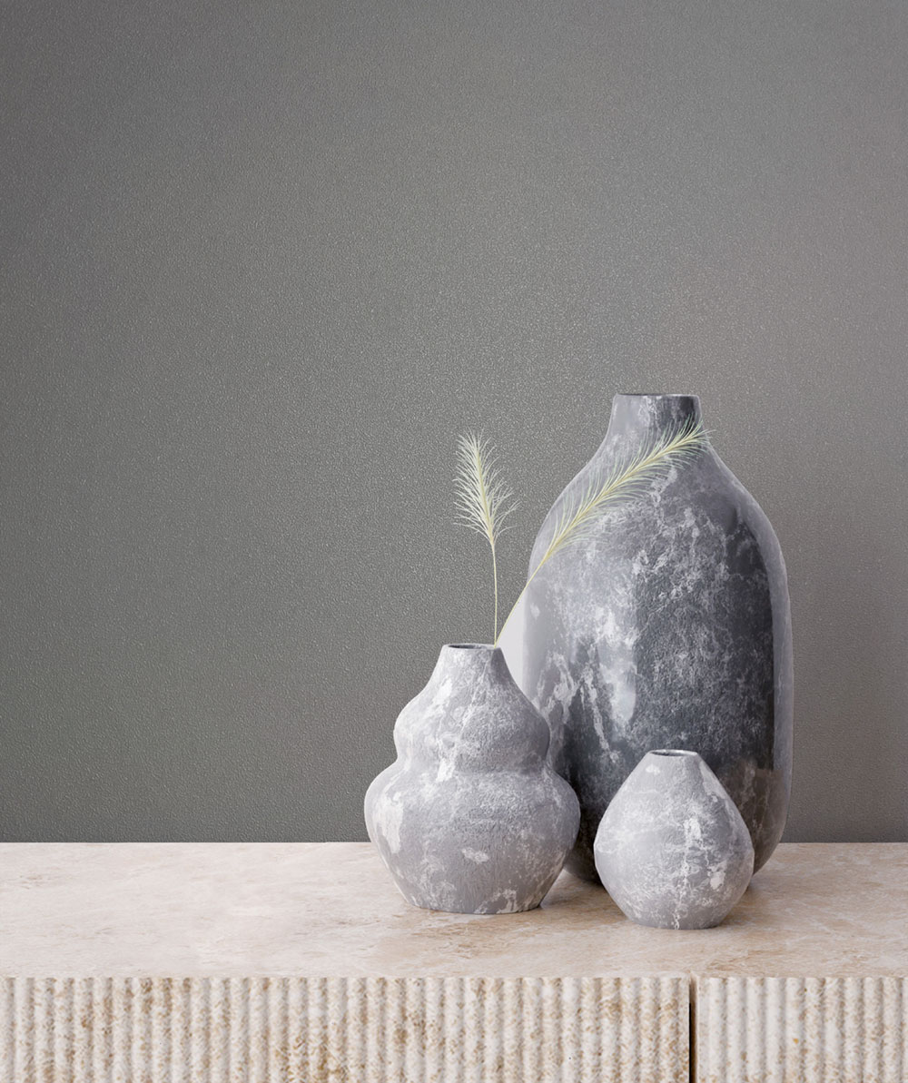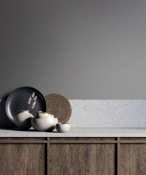 Vliesová tapeta s vinylovým povrchem, jednobarevná šedá s jemnou texturou.