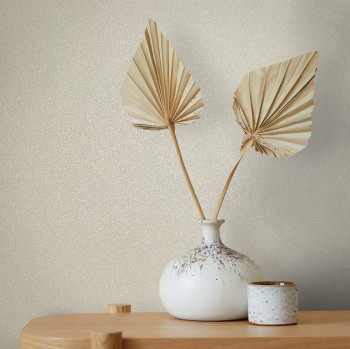 Vliesová tapeta s vinylovým povrchem, jednobarevná světle béžová s jemnou texturou.