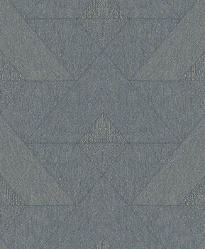 Vliesová tapeta s vinylovým povrchem, pololesklá modro-černá hrubší látková textura vytváří geometrické vzory, prosvítající pololesklý podklad.
