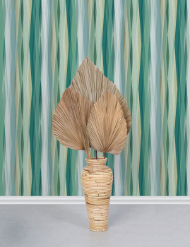 Vliesová tapeta s vinylovým povrchem, grafický vzor v odstínech zelené.
