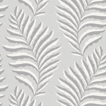Vliesová tapeta s vinylovým povrchem, motiv listů v odstínech šedé.