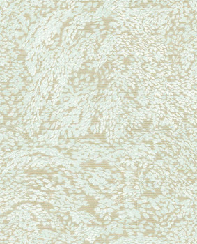 Vliesová tapeta na zeď, jemně plastický proužkový podklad v odstínech béžové, pastelově zelené drobné listy.