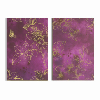 Fascinující plátno pro váš domov. Zlatý tisk květin a včel na fialovém podkladu. Tisk na plátně.