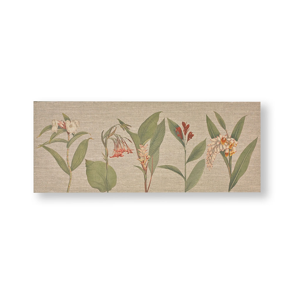 Inspirováno Charlesem Darwinem, předním botanikem z devatenáctého století - květiny na neutrálním lněném podkladu - tisk na plátně.