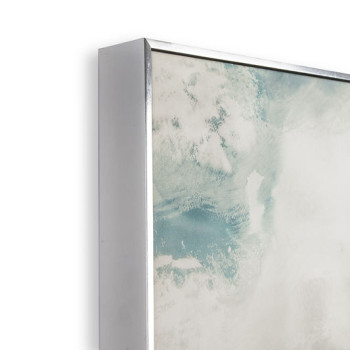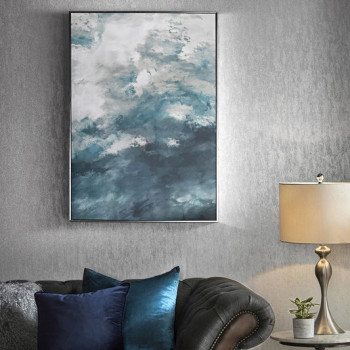 Abstraktní mraky, hluboké tóny, vše doladí stříbrné rámování. Toto tištěné plátno vnese do interiéru pocit relaxace a stěnám dodá hloubku.