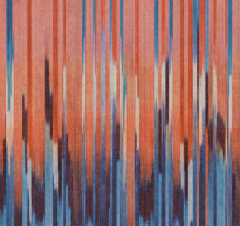 Vliesová obrazová tapeta na zeď, jemně plastická látková textura, modrá, červená, béžová, pruhy.