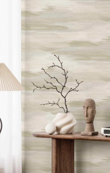 Vliesová tapeta s vinylovým povrchem, akvarelový vzor v šedo-béžových odstínech, jemná látková textura.