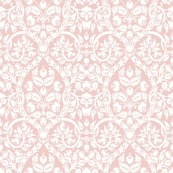 Luxusní vliesová tapeta s vinylovým povrchem, přírodní ornamentální vzor, látková textura, odstíny bílé a růžové.