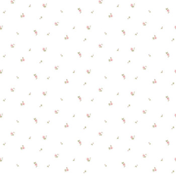Luxusní vliesová tapeta s vinylovým povrchem, smetanově bílý podklad, drobné kytičky v odstínech zelené a růžové.