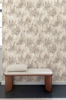 Vliesová tapeta s vinylovým povrchem, abstraktní vzor evokující přírodní materiály, látková textura.