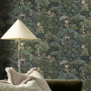 Vliesová tapeta na zeď, motiv opiček v tropické vegetaci.