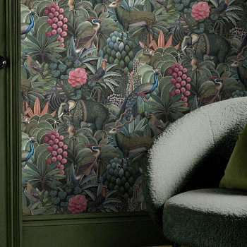 Vliesová tapeta na zeď, zeleno-modrá, džungle, zvířata, 142317, Jaipur, Graham Brown Premium