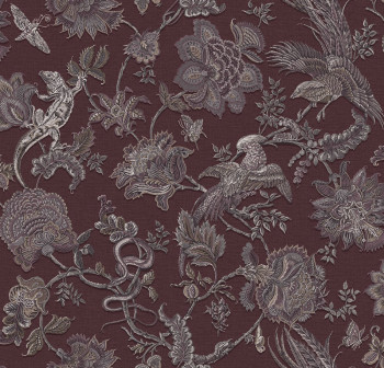 Vliesová tapeta na zeď, vínový podklad, vzor působící jako ruční výšivka.