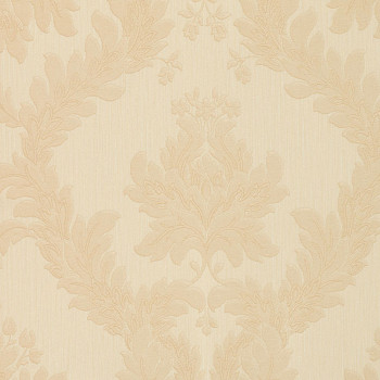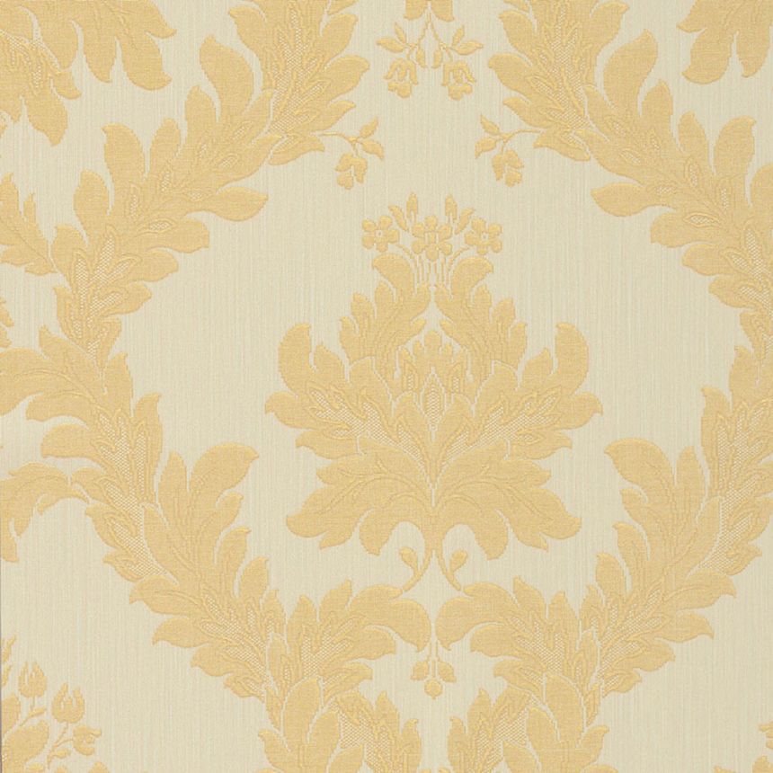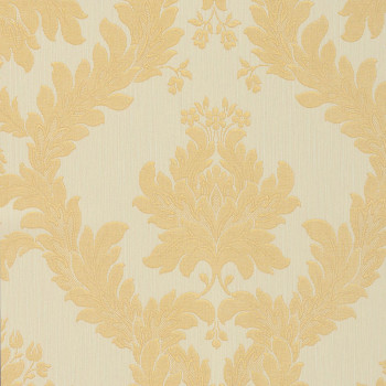 Vinylová, krémová tapeta se zlatým damaškovým vzorem.