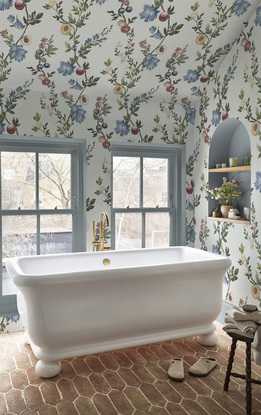 Najdete zde výrazné květinové motivy od drobných kvítků na tmavém podkladu, které působí odvážně, elegantně a trochu podmanivě, až po jemnější varianty na světlém pozadí. Krásným prvkem jsou větve broskvoní a dalších ovocných stromů plné květů i plodů, které dodávají tapetám přirozenost, svěžest a romantickou atmosféru.