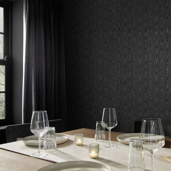 Vliesová tapeta na zeď, pololesklý šedo-stříbrný efektní moiré vzor evokuje dřevěnou kresbu.