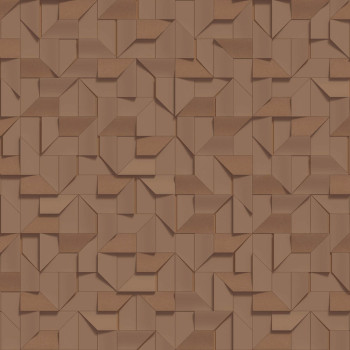 Luxusní 3D geometrická vliesová tapeta na zeď s vinylovým povrchem, plastická textura, hnědo béžová s měděnými odlesky.