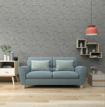 Luxusní 3D geometrická vliesová tapeta na zeď s vinylovým povrchem, plastická textura, šedá.