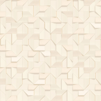 Luxusní 3D geometrická vliesová tapeta na zeď s vinylovým povrchem, plastická textura, zlatá, světle béžová.