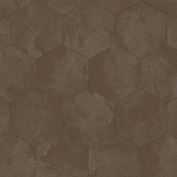 Luxusní vliesová tapeta na zeď s vinylovým povrchem, imitace sametu, hexagony, hnědá.