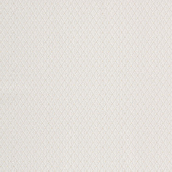 Vinylová, bílá tapeta s perlovým pololeskem a jemným vzorem.