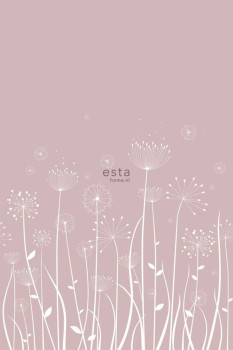 Vliesová obrazová tapeta v růžové barvě s pampeliškami v odkvětu. 4 panely