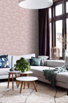 Vliesová, starorůžová tapeta na zeď s bílým rostlinným motivem.