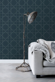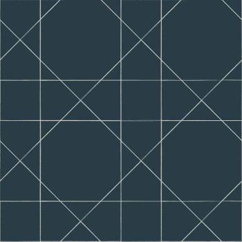 Vliesová, tmavě modrá tapeta s bílým geometrickým vzorem.