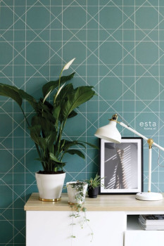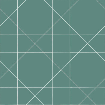 Vliesová, zelená tapeta na zeď s bílým geometrickým vzorem.