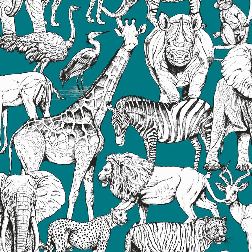 Vliesová tapeta Džungle, 107692, Jungle Animals Vert, Kids@Home 6, Graham & Brown