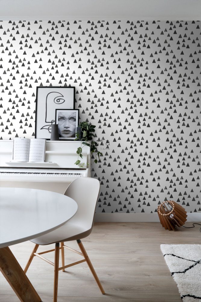 Vliesová bílá tapeta s nepravidelným černým vzorem.