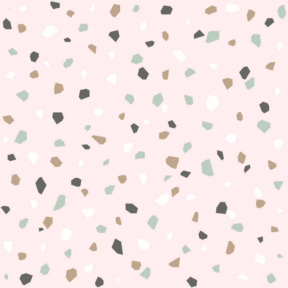 Vliesová, růžová tapeta na zeď se vzorem barevných kamínků.