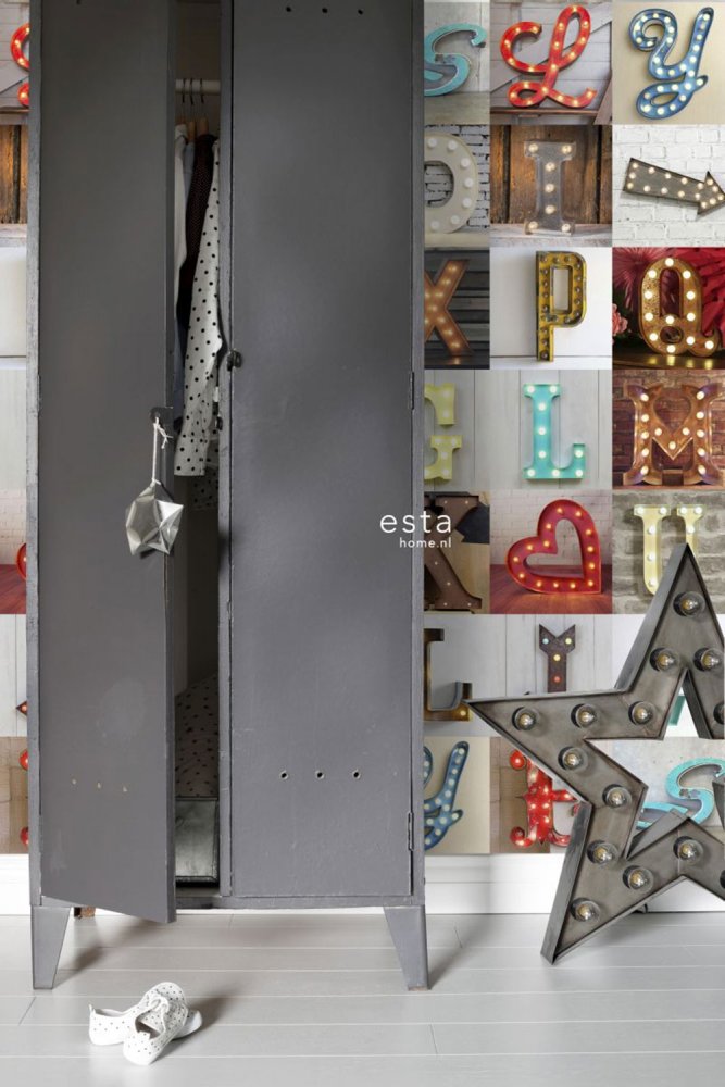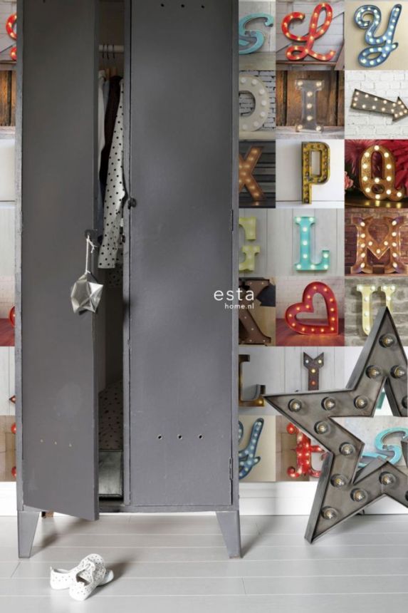 Vliesová tapeta s neonovými písmeny a znaky. Tapeta je vhodná nejen do pokoje teenagerů.