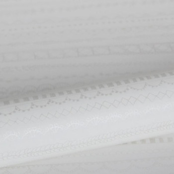 Vliesová bílá tapeta s veselými stříbrnými malůvkami.
